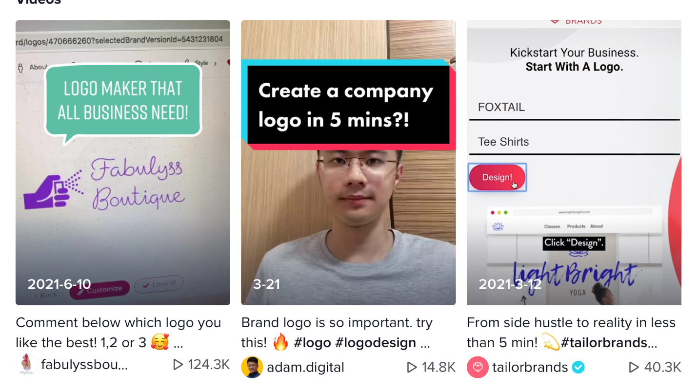 When it comes to social media, don't be afraid to embrace new platforms like TikTok. This can give you an edge in the market if you get there before your competitors. One brand that I have noticed doing this great is Tailor Brands. They use the platform to promote their logo maker product by harnessing the power of content creators and TikTok influencers.