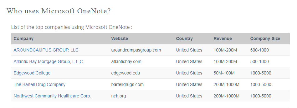 Microsoft OneNote is most often used by companies with 1000-5000 employees and >1000M dollars in revenue. In the Office Productivity category, Microsoft OneNote has a market share of about 0.2%.