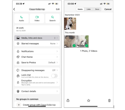 WhatsApp comes with its own way of handling attachments. While it may resemble Google Chat in some aspects it stands apart in how it organizes them. Attachments are displayed in one place, sorted into clear categories. This thoughtful arrangement simplifies the task of finding and removing specific files with ease.