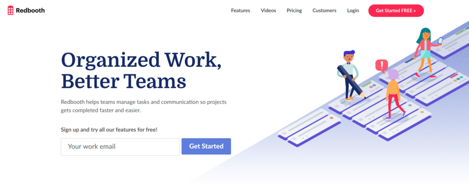 Redbooth Free is for teams of up to two members to work on two active workspaces. Free users can use many of the core Redbooth features, including unlimited conversations, project templates, Store and Share Files, Organize Tasks with Tags, and much more.