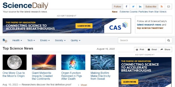 Even though the name sounds like it majorly covers science news, it is not the case. It provides information on science, technology, astronomy, artificial intelligence, robotics, etc.
