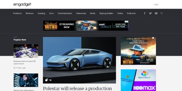 Engadget is a tech news portal that focuses on multiple concepts simultaneously. It covers all aspects of technology like product reviewing, entertainment, deals, buying guides, etc. They create their news in the form of podcasts.
