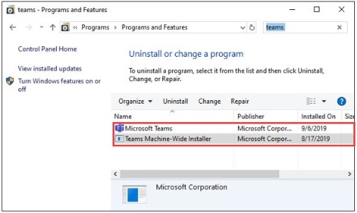 Step 2: Look for Teams and your system will show both Microsoft Teams and Teams Machine-Wide Installer. Uninstall each of them.