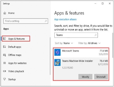 Step 2: Among Apps, find Microsoft Teams and Teams Machine-Wide Installer and uninstall both