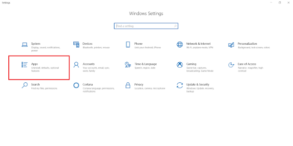 Step 1: Click the Windows icon, navigate to Settings, and then click Apps